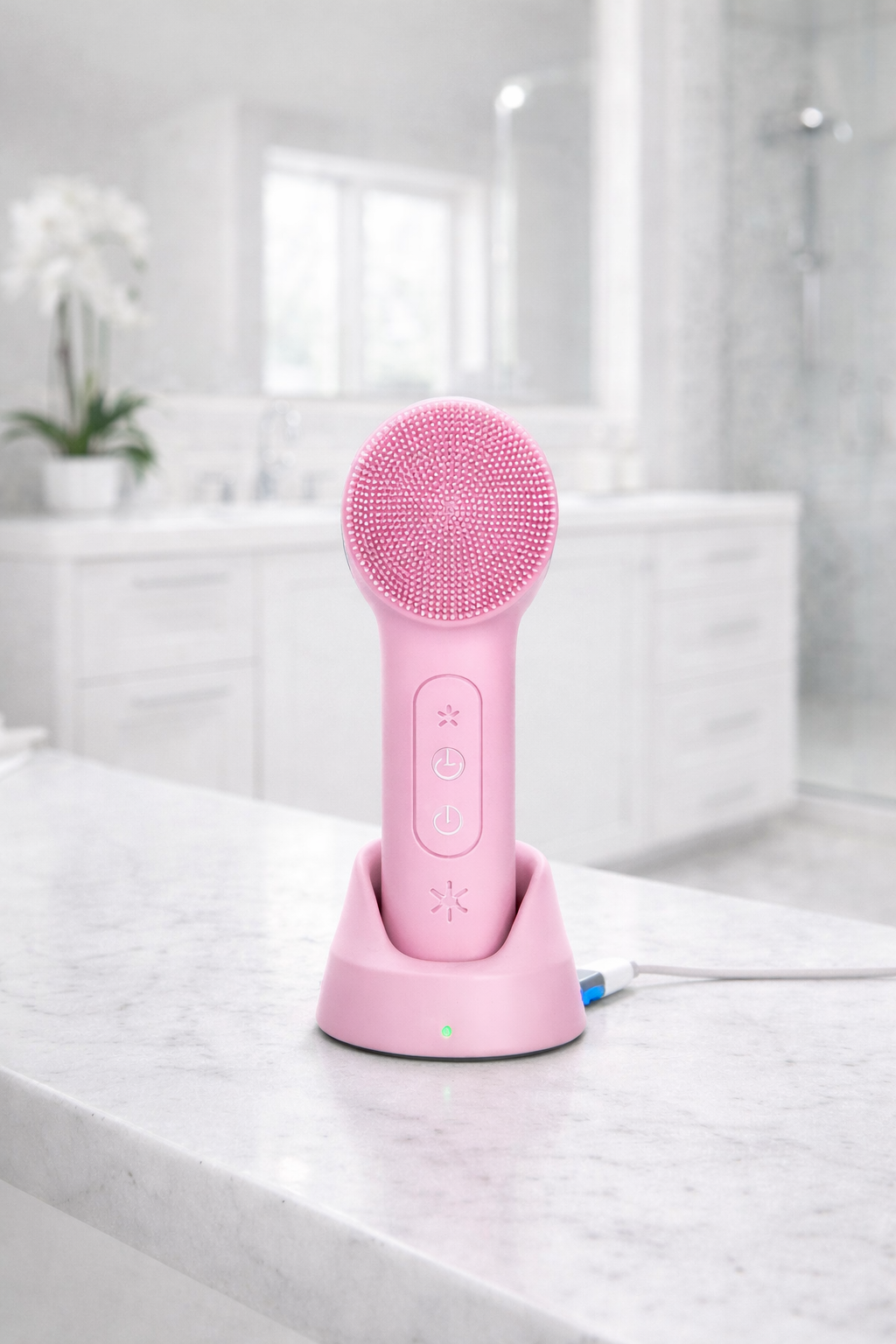 WATERPROOF SONIC FACIAL CLEANSER. Cleans deeper than hand washing, without irritating your skin. Sonic vibration, soft silicone, and cool & warm modes for a complete routine in minutes—even in the shower.